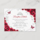Red silver and white floral Quinceanera reception details enclosure cards. Features, script font, silver butterflies, watercolor red roses and tiara. Perfect for an elegant princess style glam celebration. Personalize with your own details.