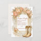 Un baby shower rustique et chic, avec des bottes de cowgirl agrémentées de pivoines roses, une verdure douce et des détails dorés chatoyants. Parfait pour une fête sur le thème de l'Occident avec une touche féminine florale.