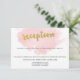 Carton d'invitation de réception de mariage à l'aquarelle or et blush