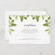 Ces cartes d'insertion de réception de mariage élégantes sont ornées de dessins de feuilles botaniques vertes tendance sur un fond blanc propre.