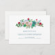 Ces cartes d'insertion de réception de mariage branchées et élégantes présentent une couronne à l'aquarelle composée de succulents, de roses, de fleurs et de feuilles dans des nuances de vert, de violet, de bleu et de blanc.