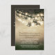 carte de réception de mariage avec guirlandes lumineuses et branches de chêne ancien. Réception parfaite pour un thème de mariage champêtre.