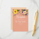 Boho, moderne, botanique, élégante, carte d'enceinte de réception de mariage pêche avec dos monogramme, tournesol, fleurs roses aquarelle et script de calligraphie tendance.
