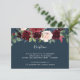 Conçu pour s'harmoniser avec notre collection de mariages Radiant Bloom, cet élégant coffret de réception botanique en bleu marine est doté d'un spray de marsala bordeaux, de fleurs rose rousse et bleu marine avec un feuillage d'eucalyptus vert, surplombant vos détails de réception de mariage, le lieu et le timing.