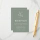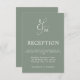 Cette simple carte minimaliste minimaliste à la sauge verte de réception de mariage dispose d'une élégante carte de script avec les initiales monogrammes de la mariée et du marié. Trouvez les produits correspondants dans la collection, ou contactez-moi par l'intermédiaire de Zazzle conversation pour obtenir des produits supplémentaires ou d'autres coloris.