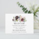 Cartes de réception de mariage avec des fleurs de paeonie et des feuilles de eucalyptus bébé avec des accents de bordeaux, de prune, de rose blush, d'indigo, de marine et de bleu poussiéreux.
