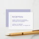 Créée pour correspondre à notre collection "Minimalist Periwinkle Purple mariage suite", cette carte minimaliste d'enceinte de réception de mariage présente une formulation simple et moderne de police violet perwinkle casquette sur un élégant arrière - plan blanc clair minimaliste. Le dos de la carte est personnalisable avec les monogrammes de la mariée et du marié. Mélangez et associez les objets de collection pour créer une suite mariage contemporaine unique.