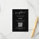 Guidez vos invités en toute simplicité en utilisant cette carte de réception de mariage élégante et l'insert de réponse RSVP, conçu en noir et blanc classique pour une sophistication intemporelle. Doté d'un script de calligraphie raffiné et d'un monogramme personnalisé de mariée et de mariée, cette carte de réponse comprend un code QR pratique reliant directement à votre site Web mariage. Mélange parfait de style et de fonction, il assure un processus de réponse sans faille tout en ajoutant une touche polie à votre suite de papeterie mariage.