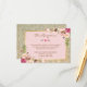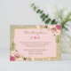 Carte de réception de mariage pailletée de rose élégante avec fleurs dorées.