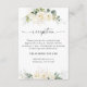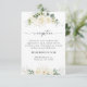 Carte de la réception de mariage Roses blanches vertes. Cette invitation de mariage élégante et élégante présente de magnifiques aquarelles peintes à la main de verdure Roses blanches. Trouvez les articles correspondants dans la collection de roses blanches vertes.