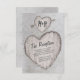 Cartes de réception de mariage champêtre élégantes représentant un arbre bouleau argenté rustique avec un cœur sculpté comportant les détails de votre jour de mariage et vos initiales.