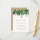 Carte d'enceinte de réception de mariage botanique moderne avec une bordure supérieure composée d'aquarelle peinte de verdure tropicale et de feuilles en faux or. Vos détails et le côté arrière sont dans un ton or assorti. Ces élégantes cartes d'enceinte sont une excellente façon de fournir à vos invités des informations sur la réception si elle sera tenue dans un endroit séparé, et sont parfaites pour un mariage de destination estivale dans une zone tropicale.