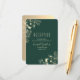 Vintage, élégante, vert émeraude carte d'enceinte de mariage avec dentelle dorée fleurie et script de calligraphie simple.