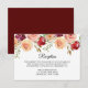 Carte de réception de mariage floral Bourgogne élégante avec un magnifique bouquet de fleurs de pivoine à l'aquarelle au-dessus de la typographie chic. Un choix d'invitation audacieux qui se démarquera parmi tous les autres styles de design de mariage en soirée cet automne.