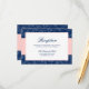 Carte de réception de mariage élégante rose blush et bleu marine.