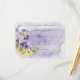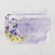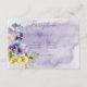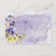 Cette carte de réception simple mais élégante présente un bouquet de pensées violettes, jaunes et lavande et d'autres fleurs avec de la verdure. Le fond est une éclaboussure d'aquarelle violette sur un fond de papier aquarelle blanc texturé. Cela fait partie de la Suite de Mariage Florale Moderne Violette & Jaune créée par Simply Farmhouse Press.