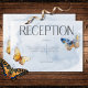 Profitez du charme de la nature avec notre carte d'enceinte de réception de papillons avec détails, mais pas d'options de dîner. Les papillons aquarelles peints à la main donnent vie à un spectacle captivant de couleurs riches. De belles tonalités beige, brun chaud, rouille terre cuite, bleu turquoise et crème créent un sentiment d'élégance cosy. Un lave-linge bleu et poussiéreux en toile de fond est parfait. Ce design incarne parfaitement l'essence de la nature, invitant vos invités à célébrer votre histoire d'amour au milieu de sa beauté. Créé par Simply Farmhouse Press.