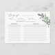 Ces belles cartes de recettes de Fêtes des mariées sont un excellent moyen d'aider à commencer la collecte des futurs mariés. Mettez une carte de recettes avec les invitations à la douche nuptiale afin que les clients puissent écrire leurs recettes préférées. Cette conception est composée d'une aquarelle de feuillage d'eucalyptus et de fleurs de lavande violette. sur le dessus - confettis d'effet verdâtre.