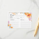 Collectionnez des recettes chéries avec style grâce à cette belle carte de recette de douche de mariée à l'aquarelle florale boho peinte à la main. Présentant un design floral pastel doux dans des nuances d'orange, de violet et de bleu, cette carte est parfaite pour rassembler les favoris de la famille et les nouvelles idées culinaires des invités. La mise en page élégante comprend des espaces pour les ingrédients, les instructions et d'autres détails clés, ce qui la rend à la fois fonctionnelle et visuellement époustouflante. Idéale pour une douche de mariée de printemps ou d'été, cette carte de recette ajoute une touche personnelle et significative à l'événement.