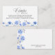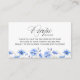 Recette Demander une carte d'enclos demandant aux clients de partager une recette préférée avec la mariée, décorée avec élégance calligraphie et aquarelle bordure florale de jolies fleurs bleues. Le modèle est mis en place pour que vous puissiez modifier le libellé si vous le souhaitez et personnaliser le dos. Ce design de jardin délicat en bleu et blanc est parfait pour les thèmes de douche nuptiale bleue, les thèmes botanique et jardin ou les wedding showers de printemps ou d'été. Pour coordonner les invitations, la papeterie et la décoration de jour de l'événement, veuillez consulter ma Collection de Fêtes des mariées florales Quelque chose de bleu ou m'envoyer un message pour ajouter des articles supplémentaires dont vous avez besoin.
