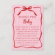 Request books instead of cards and start building your baby's library with this books for baby enclosure card. In red and pink color palette with retro, coquette polka dots and bows. Perfect for a Valentines Baby Shower, "A Little Sweetheart Is On The Way" Baby Shower theme or February baby sprinkles.