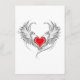 Coeur rouge peint de façon artistique avec ailes d'ange gris, décoré de contour lisse noir.