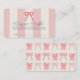 This coquette baby shower diaper raffle ticket enclosure card features a red bow on a cream background with pink stripes. The reverse side features a cream background with a red bow pattern. Personalize it for your needs. You can find matching products at my store.