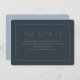 This elegant wedding enclosure card exudes sophistication with its minimalist design and refined typography. The dark, muted color palette creates a timeless and classic look, perfect for conveying important details in an understated yet sophisticated manner. Ideal for couples seeking a modern and polished aesthetic, this card ensures your guests have all the necessary information at their fingertips while maintaining a cohesive theme throughout your special day.
