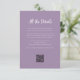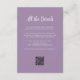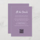 Ces élégantes cartes d'information de détails mariage lavande et violet clair sont dotées de calligraphie de script moderne et de texte blanc classique pour un choix contemporain élégant et à jour pour votre mariage. Vous pouvez utiliser ces cartes pour vous renseigner sur l'itinéraire, la réception ou le transport, les informations sur l'hôtel ou l'hébergement et tout autre détail mariage que vous devez connaître à vos invités. Il dispose également d'un code QR scannable.