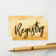 Facilitez à vos proches la tâche de se souvenir de votre registre de cadeaux avec ces cartes d'invitation audacieuses et simples. J'ai utilisé une police d'écriture manuscrite décontractée pour créer un graphique audacieux indiquant "Registre" sur le devant. Vos coordonnées peuvent être mises à jour à l'aide des champs de modèle au verso. Le fond est recouvert d'un lavis d'aquarelle ombrée jaune vif. D'autres couleurs sont également disponibles. // 105 //