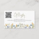 Modèle de carte d'insertion de petite taille pour registre de cadeaux de baby shower avec code à barres simple élégant neutre de genre bohème chic floral aquarelle moderne printemps été avec une bordure de fleurs sauvages de jardin rustique nature.