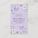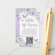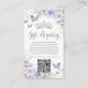 Cartes de registre de cadeaux de code QR carré floral violet élégant. Personnalisez-les facilement et rapidement, cliquez simplement sur le bouton personnaliser pour modifier les textes, changer les polices et les couleurs des polices. Avec de belles fleurs de lavande violette aquarelle, papillons et éléments argentés. Articles assortis disponibles en magasin. (c) Somerset Fine Paperie