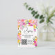 Carte de registre de code qr de douche nuptiale à l'aquarelle florale lumineuse de jardin avec des fleurs peintes à la main rose, violet, jaune et de la verdure feuilles et feuillage d'eucalyptus avec une police de caractères moderne à brosse script.