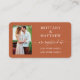Carte d'insertion de registre de mariage à calligraphie moderne tendance. Photo sur le devant. Terracotta