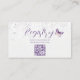 Cette carte élégante présente une belle aquarelle botanique avec un papillon mauve délicat qui se déroule autour d'un élégant arrière - plan fleur sauvage boho. C'est l'ajout parfait à n'importe quel baby shower fille, ajoutant une touche de charme et de sophistication à votre registre. Personnalisez facilement avec votre texte et votre site Web de registre pour le code QR.