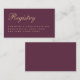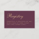 Une simple carte de boîtier mariage : texte doré sur arrière - plan couleur vin. Le titre Registre est écrit dans un élégant script calligraphique. Le texte est aligné à gauche.