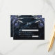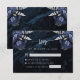 Cette élégante carte de réponse de mariage comporte des bouquets floraux bleus marine rehaussés de feuillage en faux foil argenté dans deux coins, sur une image de fond d'agate aquarelle bleue marine. Le texte personnalisable combine des polices sérif et manuscrites gris argenté. Le verso présente un design floral et d'agate bleu marine et argenté assorti.