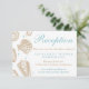 Coordonez votre suite de mariage avec ces cartes de réception sur le thème de la plage. Le côté gauche de la carte présente des illustrations de coquillages dans un ton doré clair et est accentué de minuscules « bulles » dans des nuances d'aqua. Personnalisez le texte avec vos propres informations d'événement en utilisant les modèles faciles fournis. Le verso est d'une nuance d'aqua assortie, mais vous pouvez également le modifier en cliquant sur le bouton « Personnaliser ! » et en sélectionnant une couleur de fond différente si vous le souhaitez. Visitez ma boutique pour d'autres produits coordonnés de ce design.