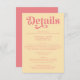 Carte D'accompagnement Retro Moderne rose et jaune Détails du Mariage