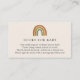 Une carte d'insertion de demande de livre pour le baby shower. Avec un arc-en-ciel aquarelle aux couleurs muettes de rouille orange, jaune et bleu avec poème : "UNE PETITE DEMANDE, NOUS ESPÉRONS PAS TROP DUR S'IL VOUS PLAÎT APPORTER UN LIVRE PLUTÔT QU'UNE CARTE ILS CHERCHERCHERONT LE LIVRE, BIEN AIMÉ OU NOUVEAU S'IL VOUS PLAÎT SIGNER À L UN MESSAGE!"