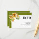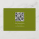 Rhododendron branch with orange yellow flowers fall wedding details enclosure card with QR code. This wedding details card features a clean, elegant design with a white frame and olive green borders. In the top left corner there is a delicate rhododendron branch with orange, yellow blossoms, while the word "INFO" stands out in bold type. The back is an olive green color and includes a QR code. Guests can scan it to easily access more information—simple, stylish, and friendly for everyone.