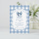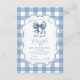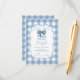 Ajoutez une touche réfléchie et amusante à votre baby shower avec cette jolie carte de fermeture à rabat pour bébé Bleu Bow! Conçue pour correspondre à une douche de bébé classique, cette carte présente un joli ruban bleu et une palette de couleurs bleu et blanc doux. Invités Invitations à apporter un pack de couches pour une chance de gagner un prix - un moyen facile d'aider les parents à être stock sur l'essentiel tout en ajoutant une touche ludique à la célébration. Imprimée sur un carton de haute qualité, cette carte de boîtier s'intègre parfaitement aux invitations et encourage les invités à participer à la tombola. C’est un ajout pratique mais adorable qui apporte une excitation supplémentaire à votre baby shower tout en assurant que tout le monde se joigne au plaisir!