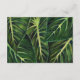 Un design audacieux et frais avec des feuilles de palmier peintes et une bordure en faux or pour un thème de mariage estival et tropical.