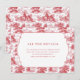 This wedding enclosure card features a charming pastoral theme with a repeating pattern of idyllic rural scenes in soft red hues against a crisp white background. The central label, framed by an ornate border, highlights the main details in bold serif typography, guiding guests to visit a customizable website for more information. The vintage engraving style adds a touch of nostalgia and elegance, perfect for setting a warm and traditional tone for your special day. Ideal for weddings, this design balances visual appeal with clarity, ensuring your event details are both inviting and easily accessible.