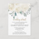 Conçu pour coordonner avec notre collection de mariages Rose d'hiver. Cette carte d'informations sur l'invité personnalisable, présente des roses blanches d'aquarelle et de la verdure avec typographie moderne en noir et or. Éléments correspondants disponibles.