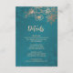 Carte D'accompagnement Rose Gold Floral Line Art Teal Wedding