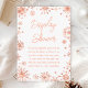 Cette carte élégante et glamour d'enceinte de douche d'affichage comprend des flocons de neige rose couleur or irrégulière parties scintillant et des étincelles sur un arrière - plan blanc. Il est parfait pour un baby shower à thème d'hiver ou de Noël.