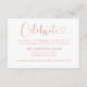 La carte d'enceinte de réception de mariage, en or rose moderne et blanc (les couleurs peuvent être modifiées), présente un design typographique élégant avec un script de calligraphie chic et un accent du coeur. Le texte personnalisé simple et élégant qui peut être personnalisé aux invités invitations pour "célébrer" le mariage, y compris le nom du lieu de réception, l'adresse et l'heure d'arrivée.