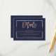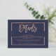 Carte D'accompagnement Rose or marine bleu script direction mariage