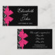 Cette carte d'information de registre-cadeaux mariage officielle comporte un élégant motif rose noir et blanc, un arc rose chaud et un texte blanc sur un arrière - plan noir.